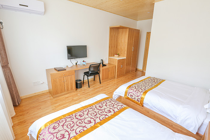 目前有四合院标准间93间,三人间36间,大床房7间,门市价:398元/间,三人间门市价:498元/间,订房热线:0575-87919977